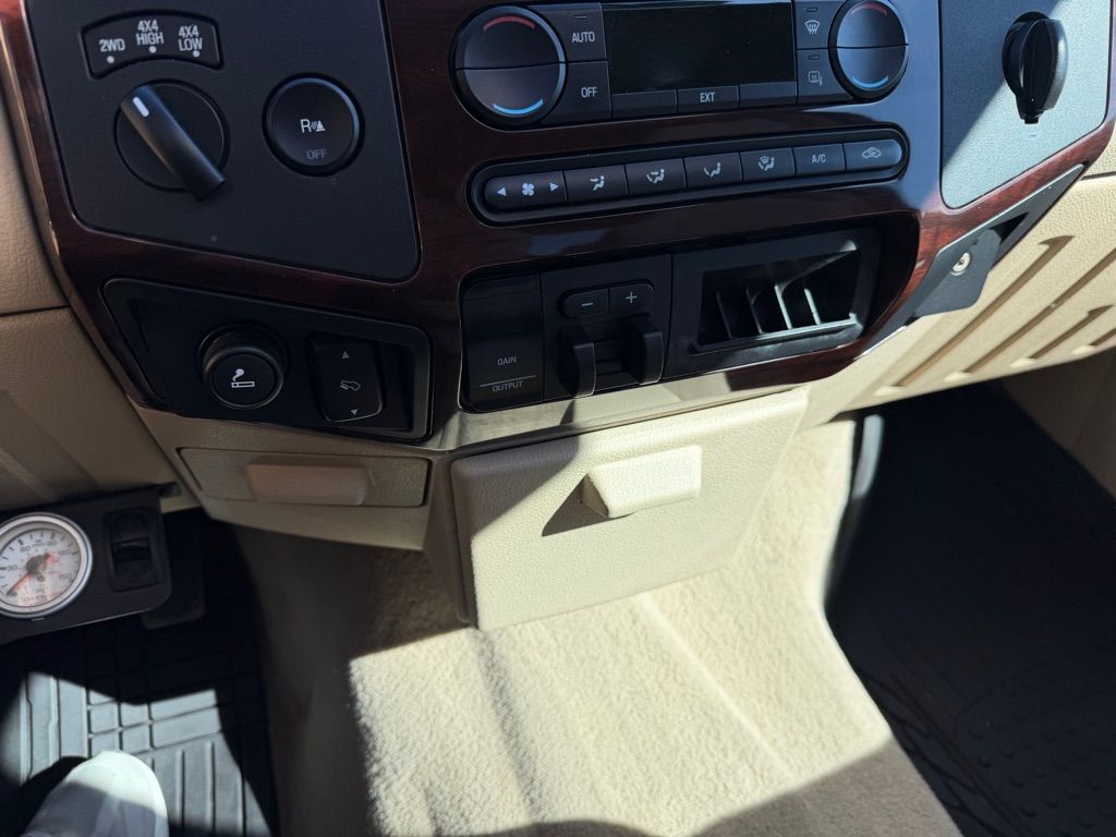 See what’s behind you with the back up camera on it. The Ford F-250 keeps you comfortable with Auto Climate. The leather seats in this model are a must for buyers looking for comfort, durability, and style. This model is painted with a sleek and sophisticated black color. This model is outfitted with a Powerstroke diesel engine A trailer braking system is already installed on this vehicle. This 3/4 ton pickup has a V8, 6.4L high output engine. Maintaining a stable interior temperature in this Ford F-250 is easy with the climate control system. It has four wheel drive capabilities. The gas and brake pedals adjust allowing you to fine-tune them for personal fit and comfort. This unit has a diesel engine. The Ford F-250 features cruise control for long trips. It has an automatic transmission. This 3/4 ton pickup comes standard with a state of the art traction control system.