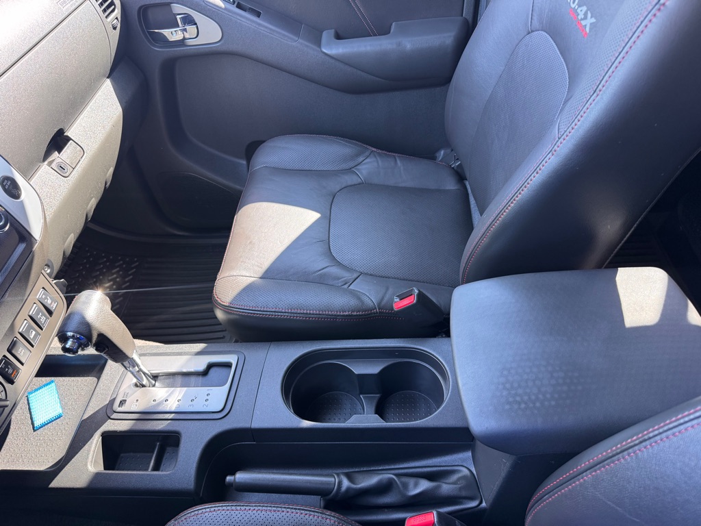 This vehicle is a certified CARFAX 1-owner. The leather seats in this 2009 Nissan Frontier are a must for buyers looking for comfort, durability, and style. This vehicle features a hands-free Bluetooth phone system. The vehicle has four wheel drive capabilities. Impresses the most discerning driver with the deep polished blue exterior on the Nissan Frontier. Maintaining a stable interior temperature in this unit is easy with the climate control system. This Nissan Frontier has a V6, 4.0L high output engine. This unit is equipped with a gasoline engine. Electronic Stability Control is one of many advanced safety features on this model. Easily set your speed in the vehicle with a state of the art cruise control system. Increase or decrease velocity with the touch of a button. This 2009 Nissan Frontier has fog lights for all weather conditions. Help alleviate lower back pain with the driver seat lumbar support in this small pickup.