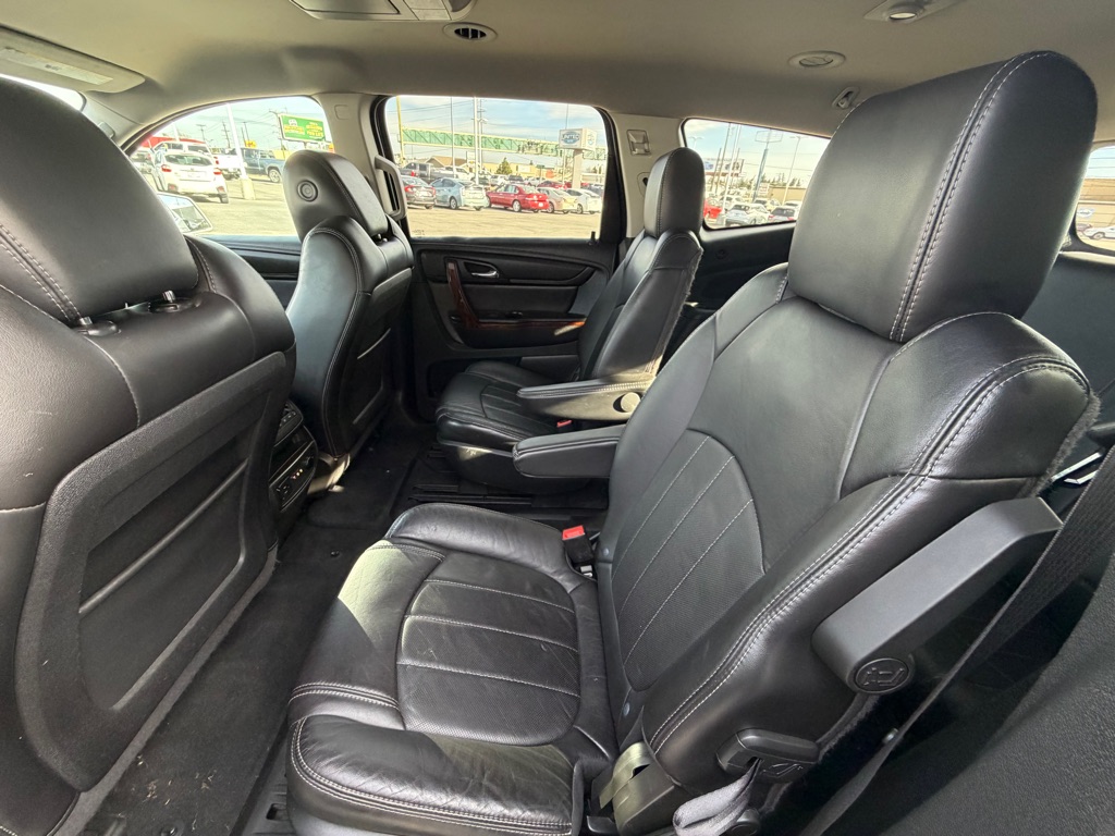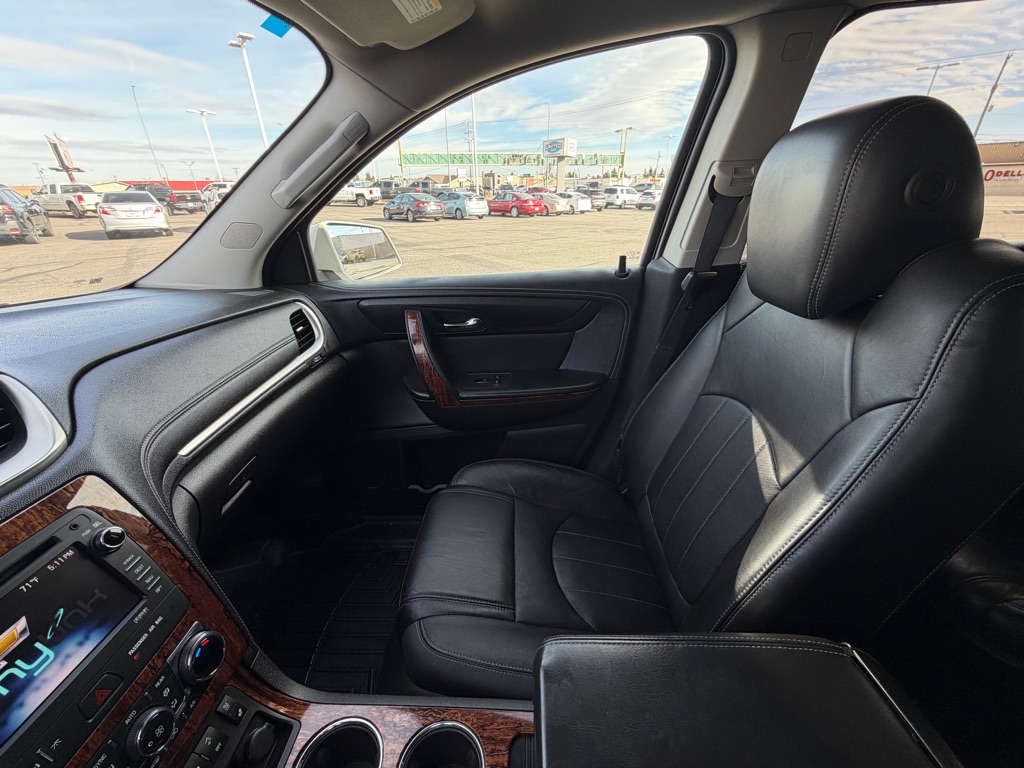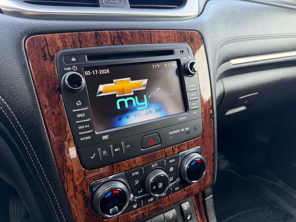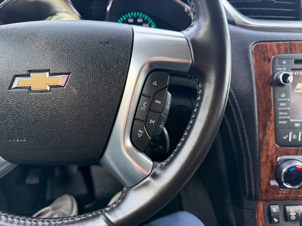 The rear parking assist technology on the vehicle will put you at ease when reversing. The system alerts you as you get closer to an obstruction. See what’s behind you with the back up camera on this model. Never get into a cold vehicle again with the remote start feature on this vehicle. Engulf yourself with the crystal clear sound of a BOSE sound system in this unit. This unit is pure luxury with a heated steering wheel. The vehicle features a hands-free Bluetooth phone system. It offers Automatic Climate Control for personalized comfort. The leather seats are soft and supportive on this Chevrolet Traverse. Keep safely connected while in the vehicle with OnStar. You may enjoy services like Automatic Crash Response, Navigation, Roadside Assistance and Hands-Free Calling. The vehicle embodies class and sophistication with its refined white exterior. Maintaining a stable interior temperature in this model is easy with the climate control system.