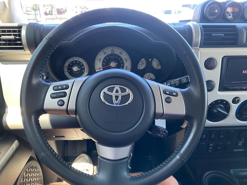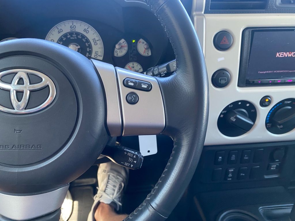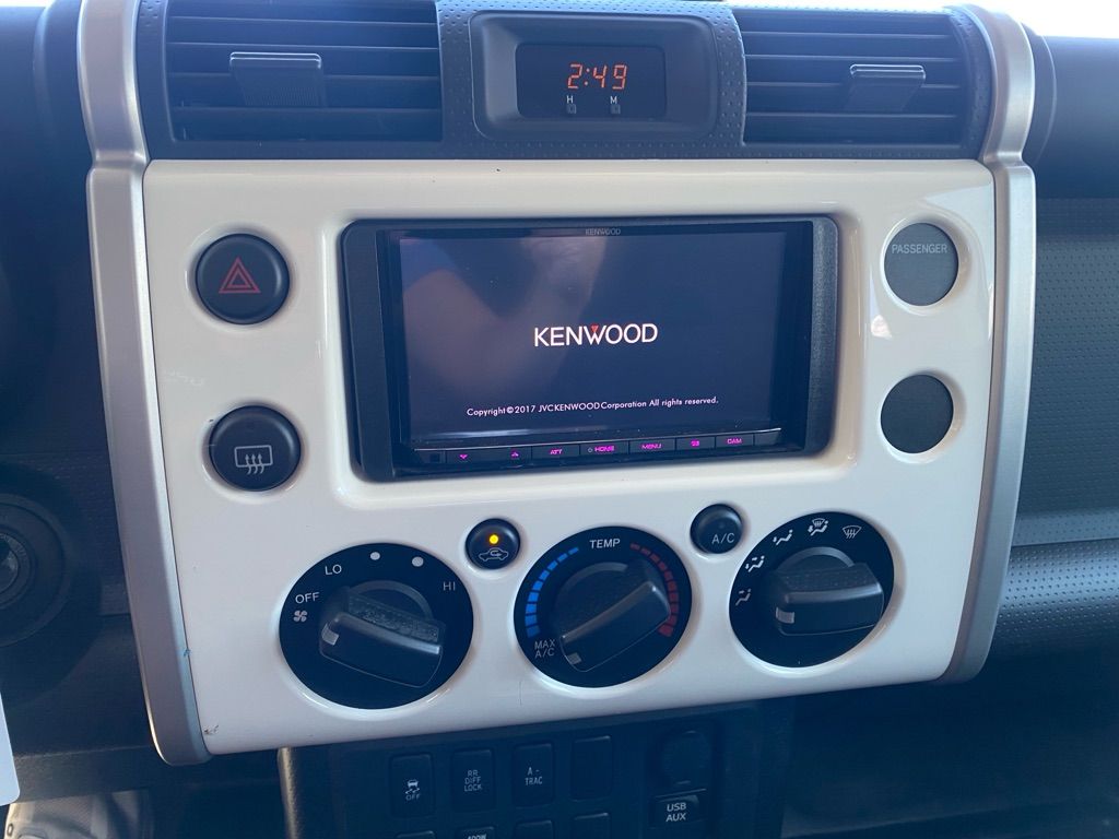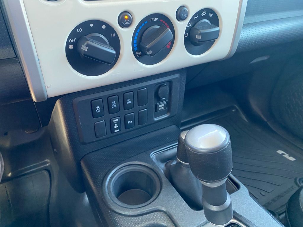 Protect this mid-size suv from unwanted accidents with a cutting edge backup camera system. The Toyota FJ Cruiser features a hands-free Bluetooth phone system. This vehicle has a clean CARFAX vehicle history report. Maintaining a stable interior temperature in this vehicle is easy with the climate control system. This vehicle has four wheel drive capabilities. This vehicle has a V6, 4.0L high output engine. It has an elegant black exterior finish. Enjoy the tried and true gasoline engine in this model. This Toyota FJ Cruiser has an automatic transmission. Anti-lock brakes are standard on this vehicle. Electronic Stability Control is one of many advanced safety features on the vehicle. This mid-sized SUV is perfect for your next adventure.