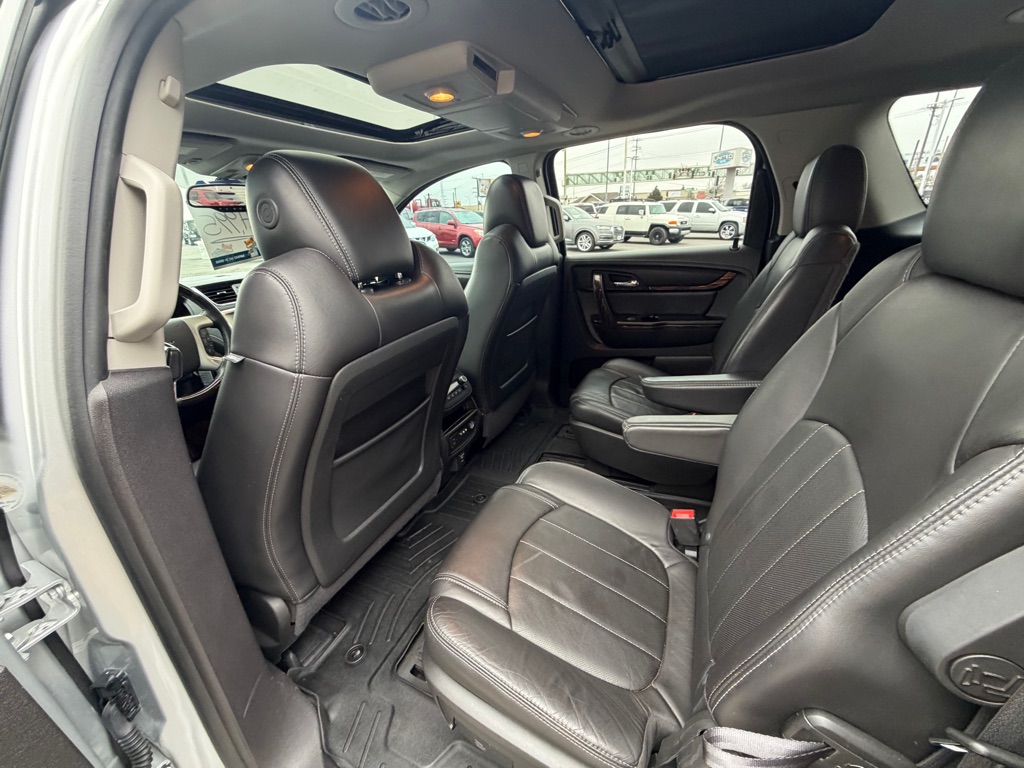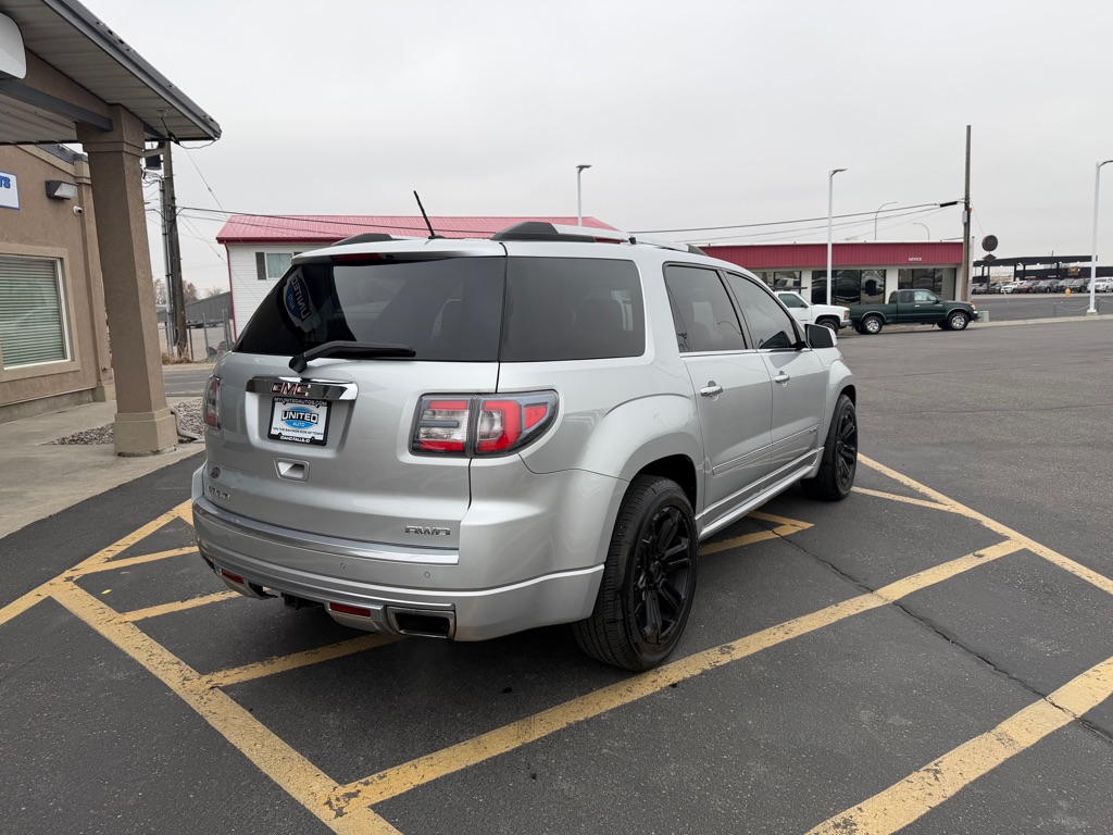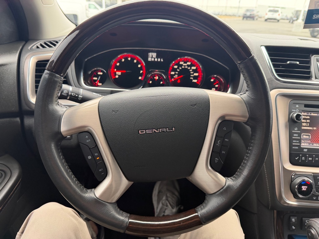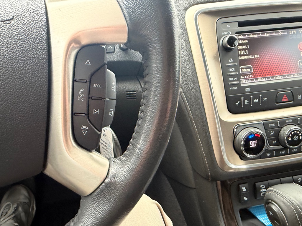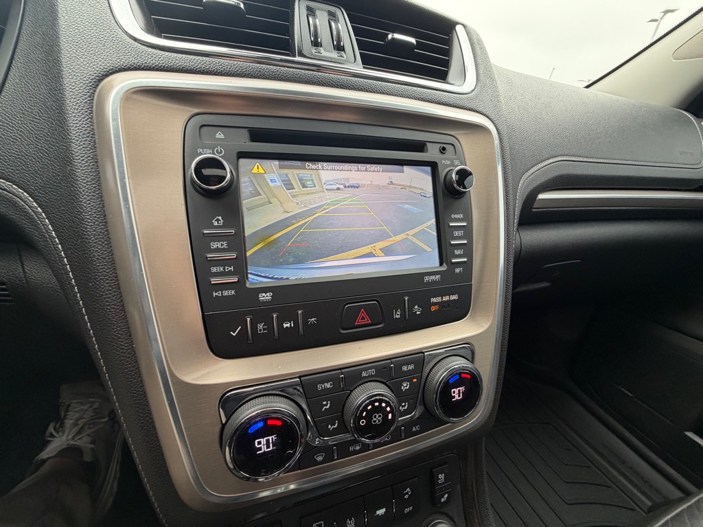This unit offers Automatic Climate Control for personalized comfort. Bluetooth technology is built into the vehicle, keeping your hands on the steering wheel and your focus on the road. Our dealership has already run the CARFAX report and it is clean. A clean CARFAX is a great asset for resale value in the future. This unit’s Lane Departure Warning helps keep you in your lane. See what’s behind you with the back up camera on this vehicle. The leather seats are soft and supportive on this 2014 GMC Acadia . The state of the art park assist system will guide you easily into any spot. Start this model from inside with remote start. The vehicle features a high end BOSE stereo system. Set the temperature exactly where you are most comfortable in the GMC Acadia. The fan speed and temperature will automatically adjust to maintain your preferred zone climate. It is equipped with all wheel drive.