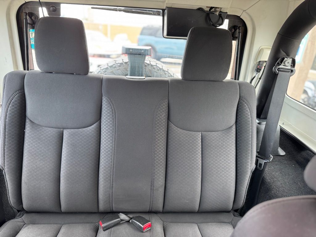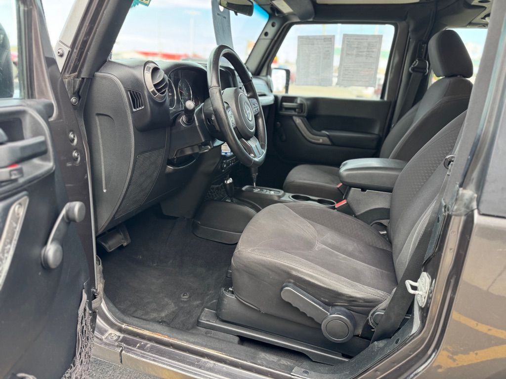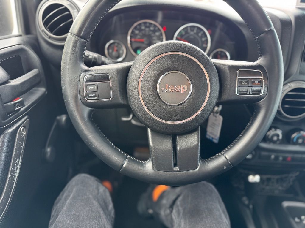 Set the temperature exactly where you are most comfortable in this Jeep Wrangler. The fan speed and temperature will automatically adjust to maintain your preferred zone climate. This model has a V6, 3.6L high output engine. It has four wheel drive capabilities. The vehicle emanates grace with its stylish gray exterior. Easily set your speed in the vehicle with a state of the art cruise control system. Increase or decrease velocity with the touch of a button. The vehicle has front air bags that will protect you and your passenger in the event of an accident. Front and rear side curtain airbags are included on this mid-size suv. This 2014 Jeep Wrangler is equipped with front side curtain airbags. The vehicle has fog lights for all weather conditions. Enjoy the tried and true gasoline engine in the vehicle. This 2014 Jeep Wrangler has an automatic transmission. The Electronic Stability Control will keep you on your intended path.