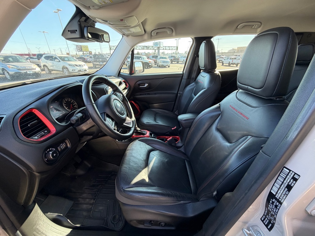 The leather seats in this small suv are a must for buyers looking for comfort, durability, and style. Protect this small suv from unwanted accidents with a cutting edge backup camera system. The vehicle keeps you comfortable with Auto Climate. This unit has a clean CARFAX vehicle history report. Never get into a cold vehicle again with the remote start feature on this Jeep Renegade. with XM/Sirus Satellite Radio you are no longer restricted by poor quality local radio stations while driving it. Anywhere on the planet, you will have hundreds of digital stations to choose from. This model is pure luxury with a heated steering wheel. This 2016 Jeep Renegade features a hands-free Bluetooth phone system. You’ll never again be lost in a crowded city or a country region with the navigation system on it. This vehicle is a certified CARFAX 1-owner. Set the temperature exactly where you are most comfortable in this vehicle. The fan speed and temperature will automatically adjust to maintain your preferred zone climate.