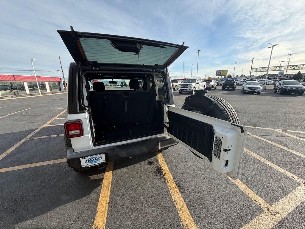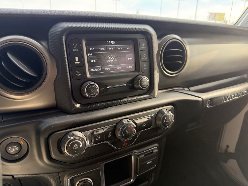 The satellite radio system in this Jeep Wrangler gives you access to hundreds of nation-wide radio stations with a clear digital signal. This model is equipped with the latest generation of XM/Sirius Radio. Bluetooth technology is built into the Jeep Wrangler, keeping your hands on the steering wheel and your focus on the road. See what’s behind you with the back up camera on it. This vehicle has four wheel drive capabilities. This unit shines with clean polished lines coated with an elegant white finish. Maintaining a stable interior temperature in this unit is easy with the climate control system. With the keyless entry system on the vehicle you can pop the trunk without dropping your bags from the store. This unit has a 4 Cyl, 2.0L high output engine. The Electronic Stability Control will keep you on your intended path. This Jeep Wrangler is equipped with a gasoline engine.