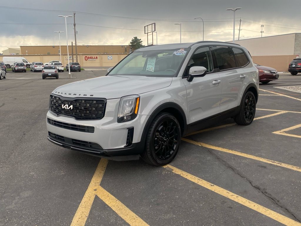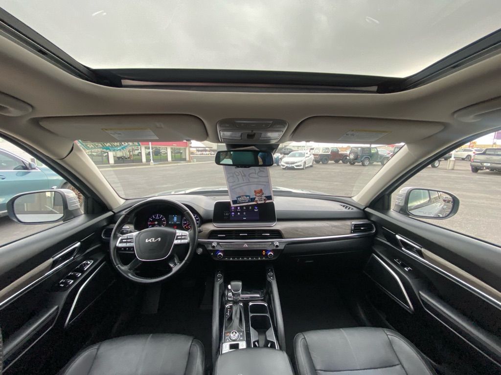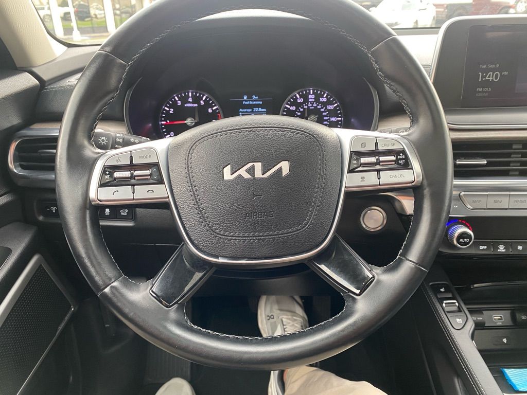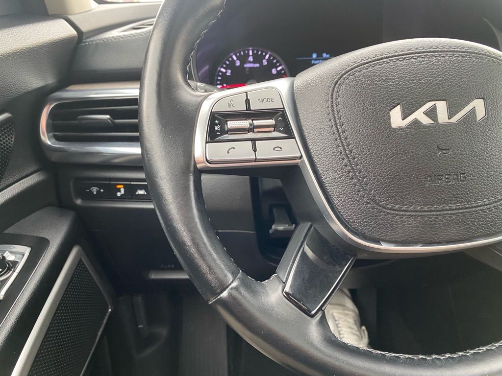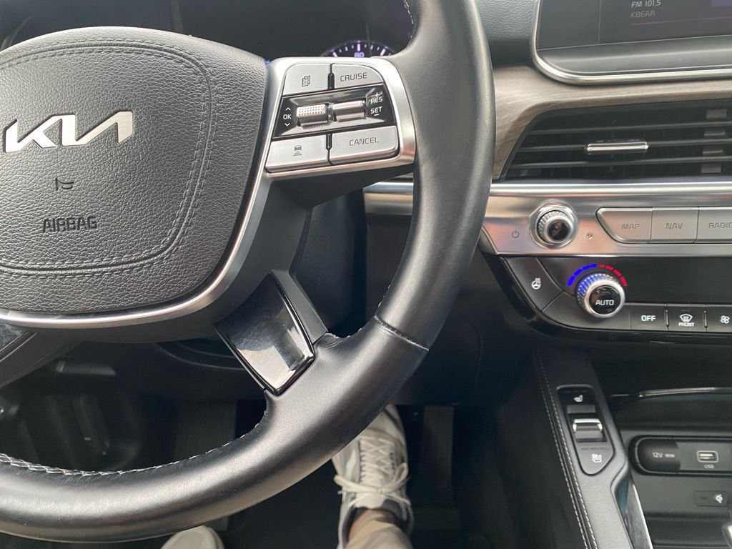Start the vehicle from inside with remote start. This 1/2 ton suv features a hands-free Bluetooth phone system. The installed navigation system will keep you on the right path. This vehicle is a certified CARFAX 1-owner. This 2022 Kia Telluride offers Android Auto for seamless smartphone integration. This Kia Telluride’s Lane Departure Warning helps keep you in your lane. The leather seats in this vehicle are a must for buyers looking for comfort, durability, and style. The Kia Telluride employs advanced tech for collision avoidance, enhancing safety on the road. It offers Apple CarPlay for seamless connectivity. This 2022 Kia Telluride has a clean CARFAX vehicle history report. See what’s behind you with the back up camera on this vehicle. Keep your hands warm all winter with a heated steering wheel in this model . This vehicle is equipped with all wheel drive. It projects refinement with a racy metallic gray exterior.
